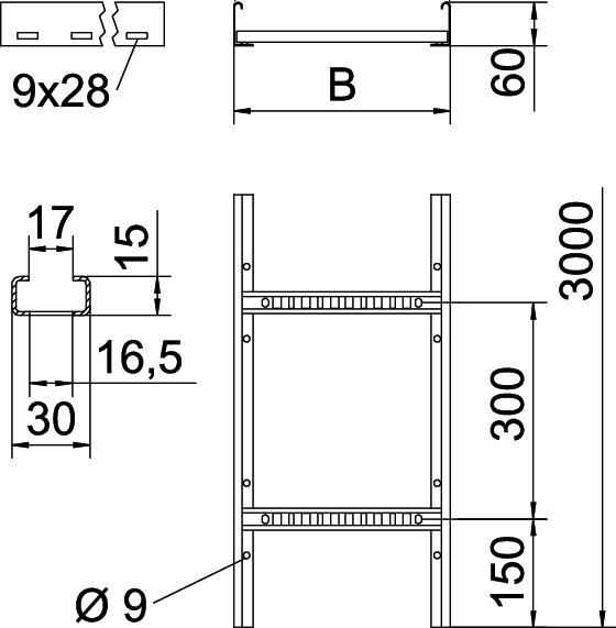 Caminho de cabos tipo escada degrau perfurado, soldado 60x400x3000, St, FS - 6209614 - Obo Bettermann