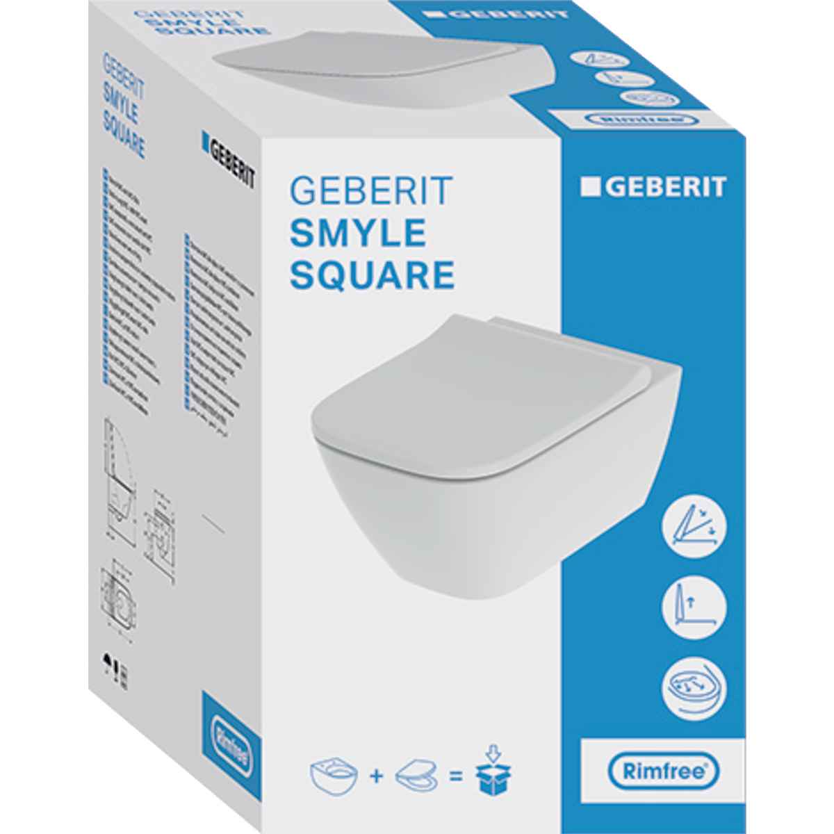 Conjunto de sanita suspensa de fundo profundo Geberit Smyle Square, forma fechada, Rimfree, com tampo de sanita, tampa sobreposta - Geberit