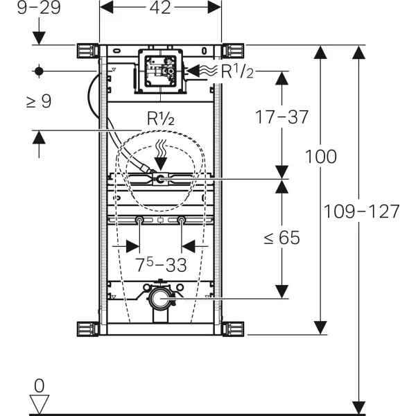 - Altura da estrutura ajustável ao urinol, 109–127 cm