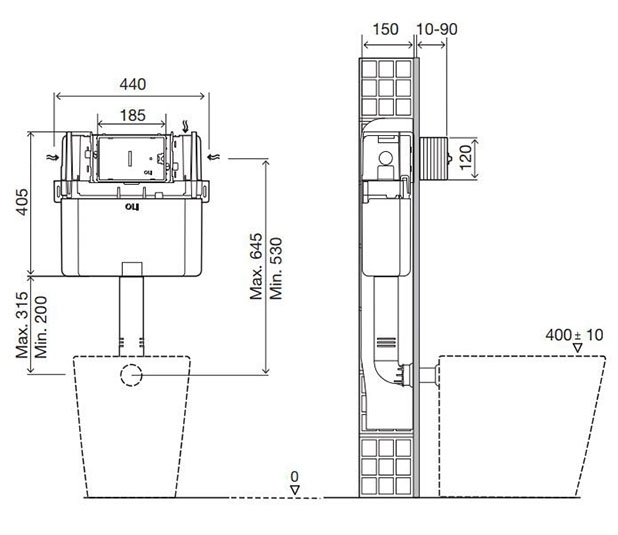 - Autoclismo de dupla descarga 6/3 litros (ajustável a 4/2 ou 7/3 litros);