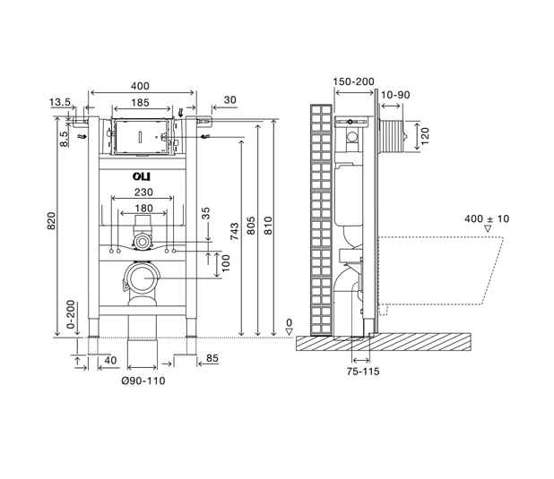 - Autoclismo de dupla descarga 6/3 litros (ajustável a 4/2 ou 7/3 litros);