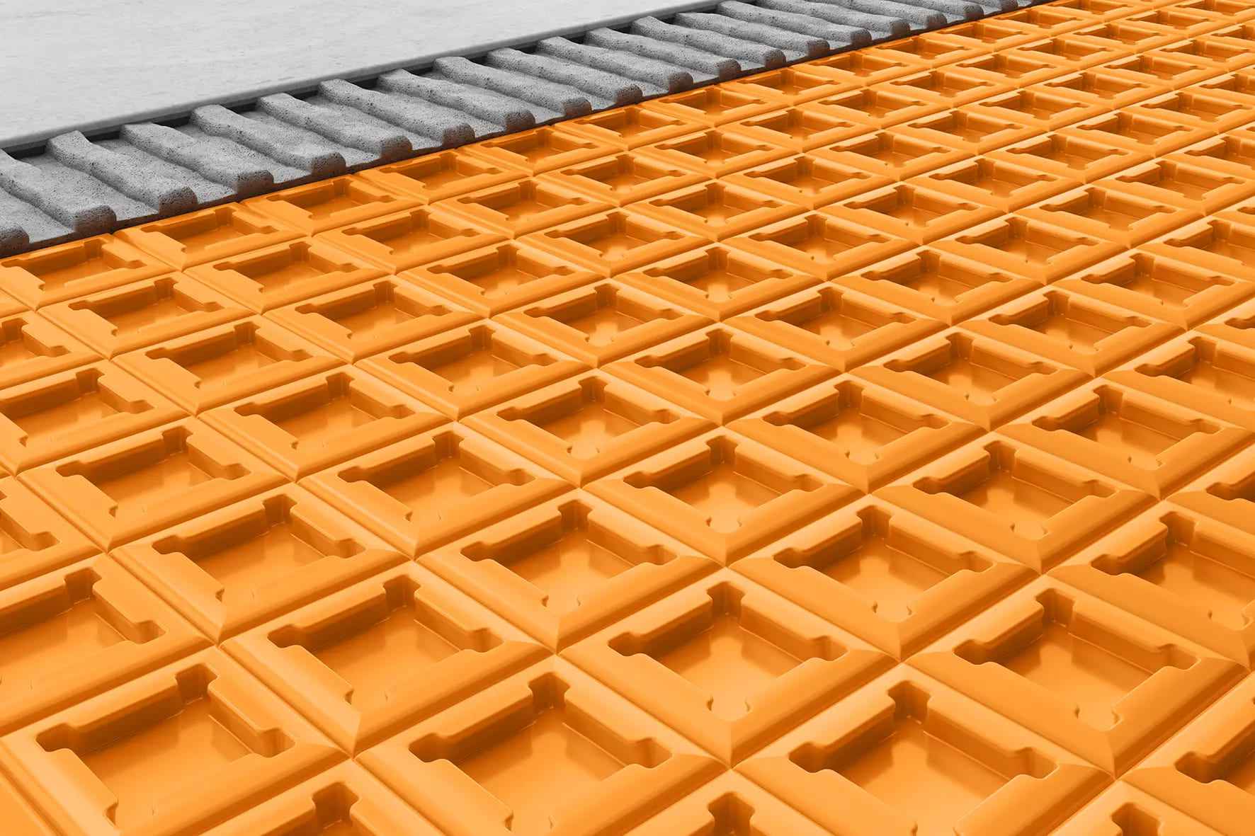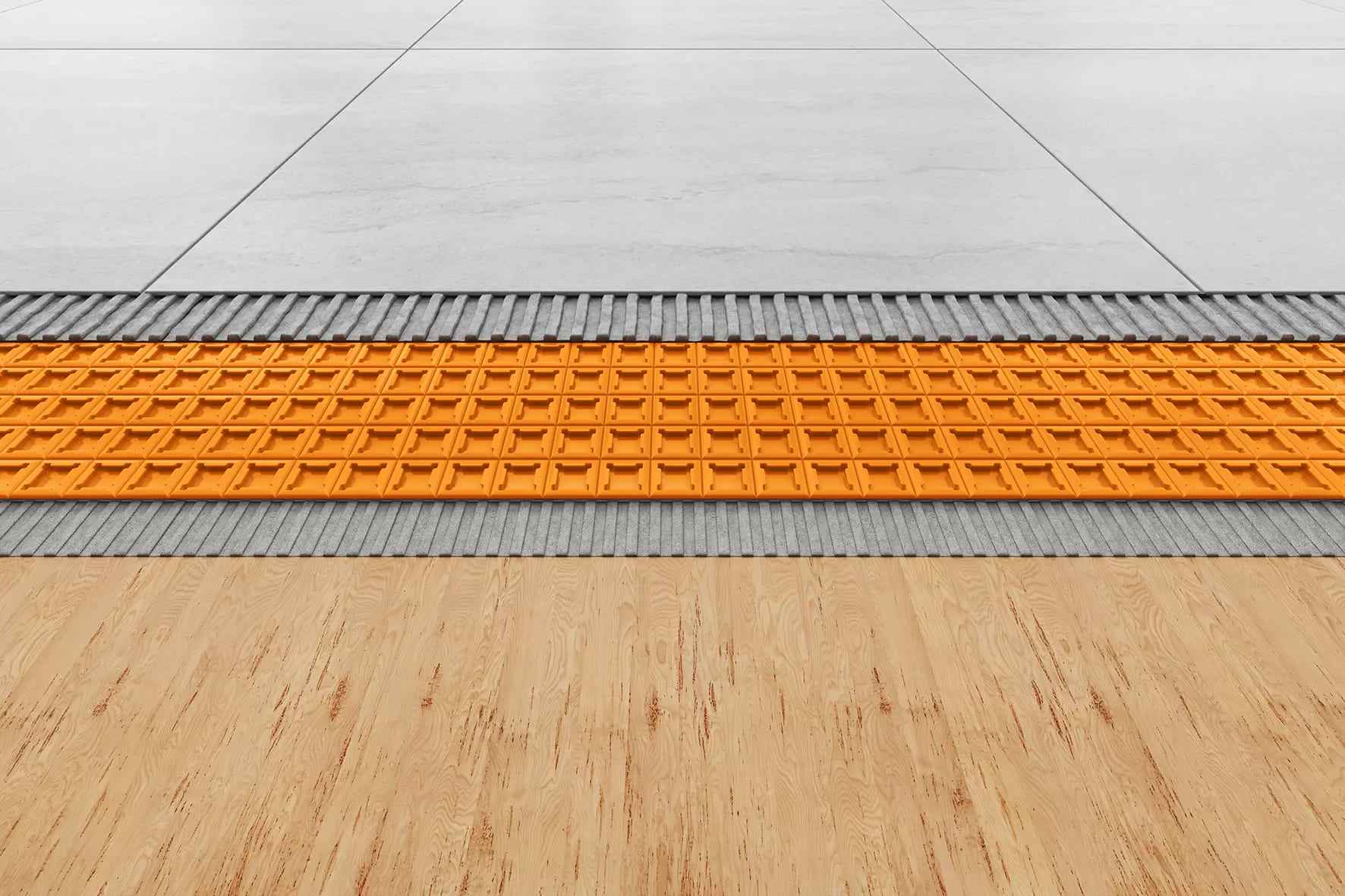 - A Schlüter-DITRA é uma lâmina de polipropileno com grelha de corte Easycut e cavidades quadradas recortadas com design Easyfill no verso com geotêxtil.