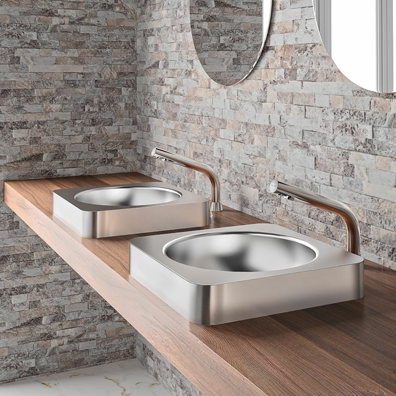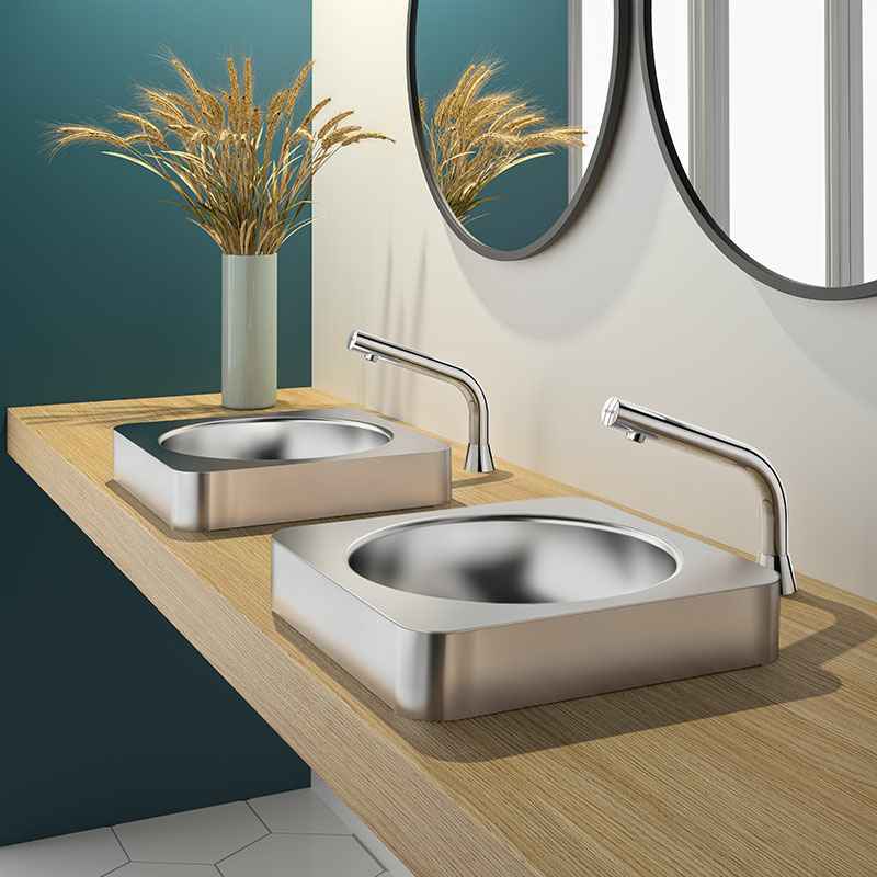 Lavatório de pousar QUADRA - 130 x 380 x 380 mm - Inox 304 polido satinado - Ref:120650 - DELABIE