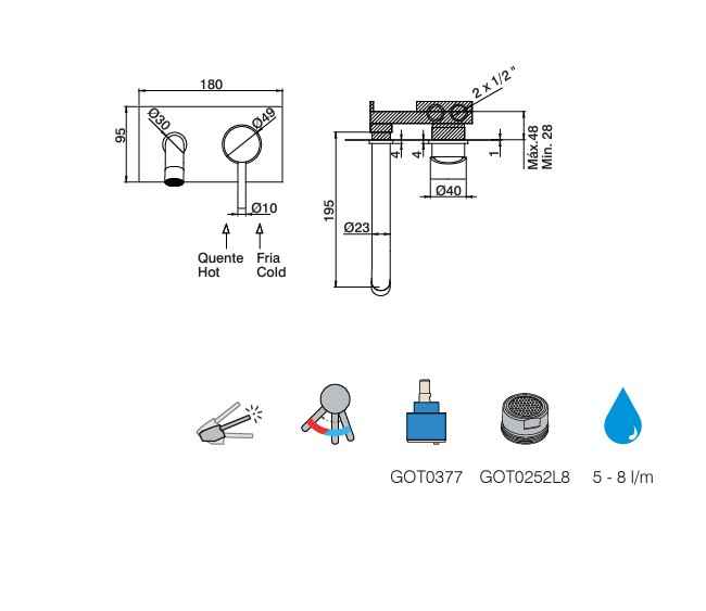 Misturadora Lavatorio Encastrar Placa STILLO com Bica - OFA