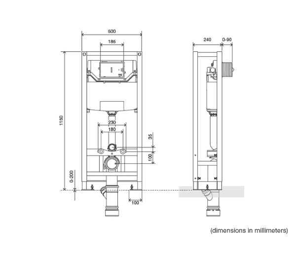 - Autoclismo de dupla descarga 6/3 litros (ajustável a 4/2 ou 7/3 litros);