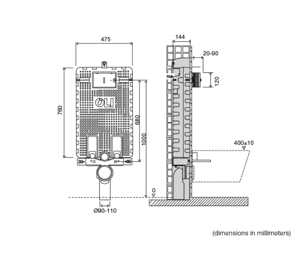 - Autoclismo de dupla descarga 6/3 litros (ajustável a 4/2 ou 7/3 litros);