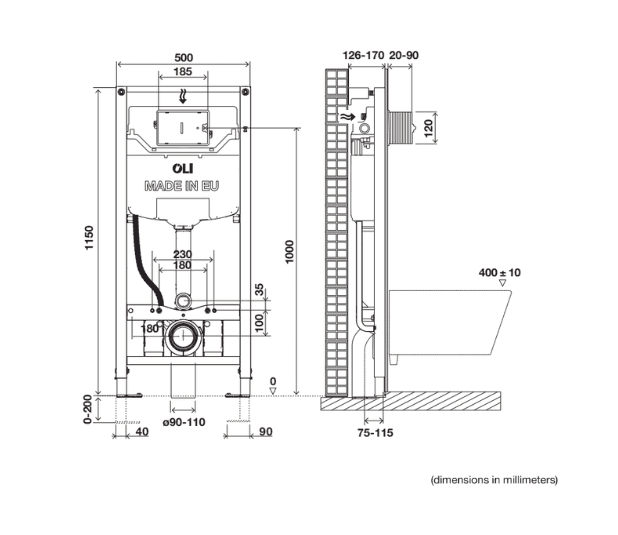 - Autoclismo de dupla descarga 6/3 litros (ajustável a 4/2 ou 7/3 litros);
