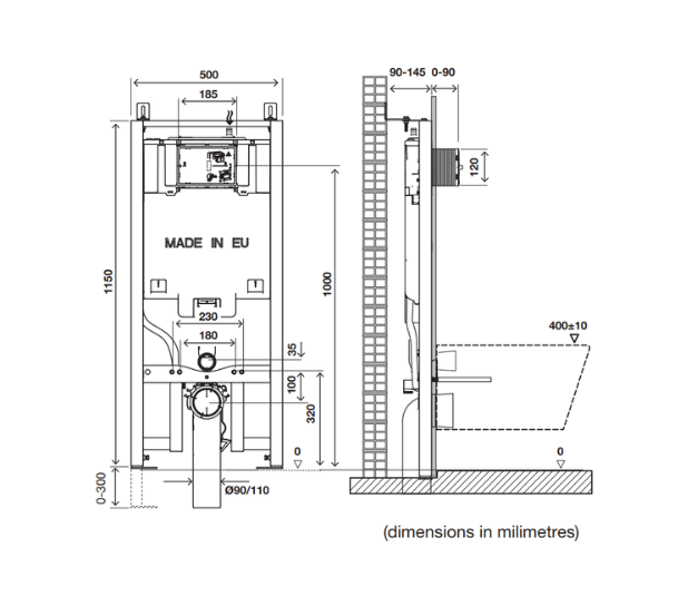 - Autoclismo interior de dupla descarga compatível com os acionadores de dupla descarga 6/3 litros, regulável para 4/2 litros;