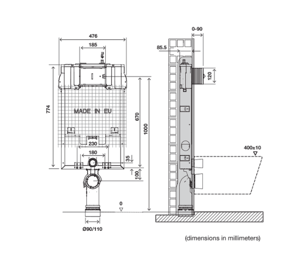 - Autoclismo interior de dupla descarga compatível com accionadores de dupla ou simples descarga 6/3 litros