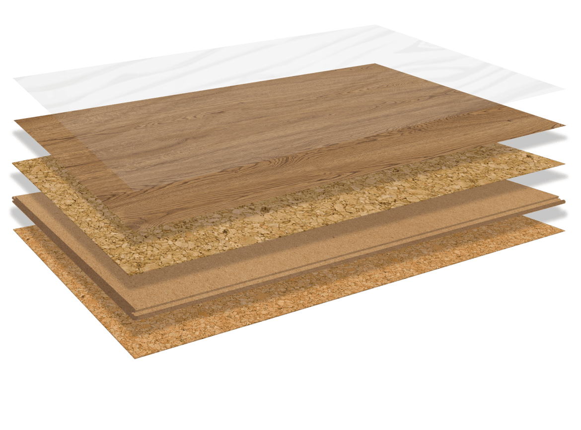 A opção mais segura para o seu espaço devido à sua estrutura com cortiça multicamada sem PVC. -