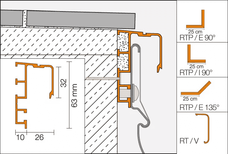 Perfil de suporte de margem da varanda para reequipamento Schlüter-BARA-RTP Perfil de suporte de margem da varanda para reequipamento