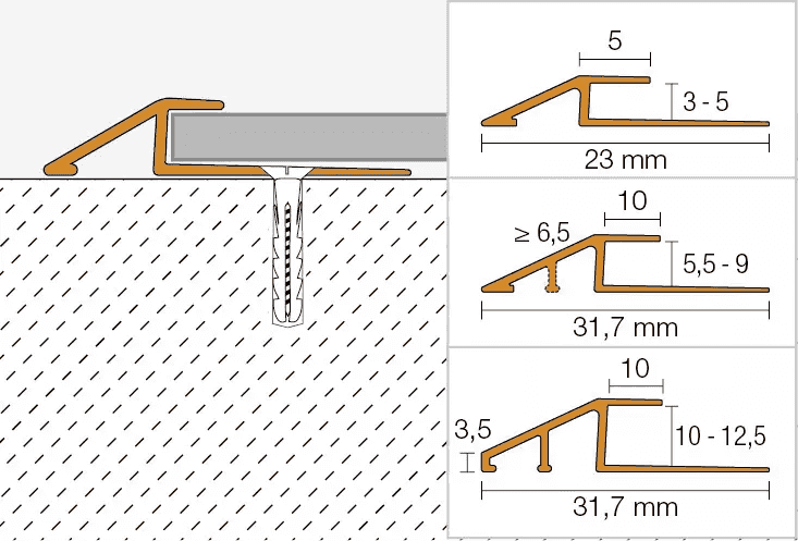- Fixar o perfil ao piso com parafusos de cabeça escareada Ø 3,5 mm. ...