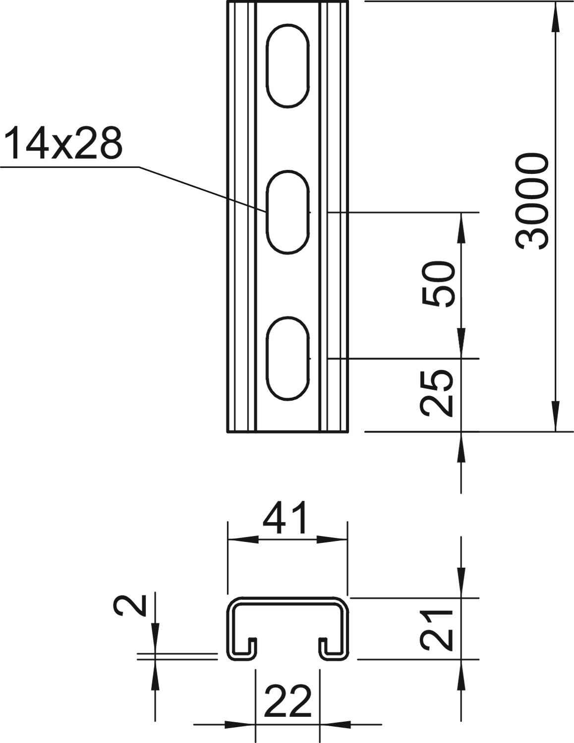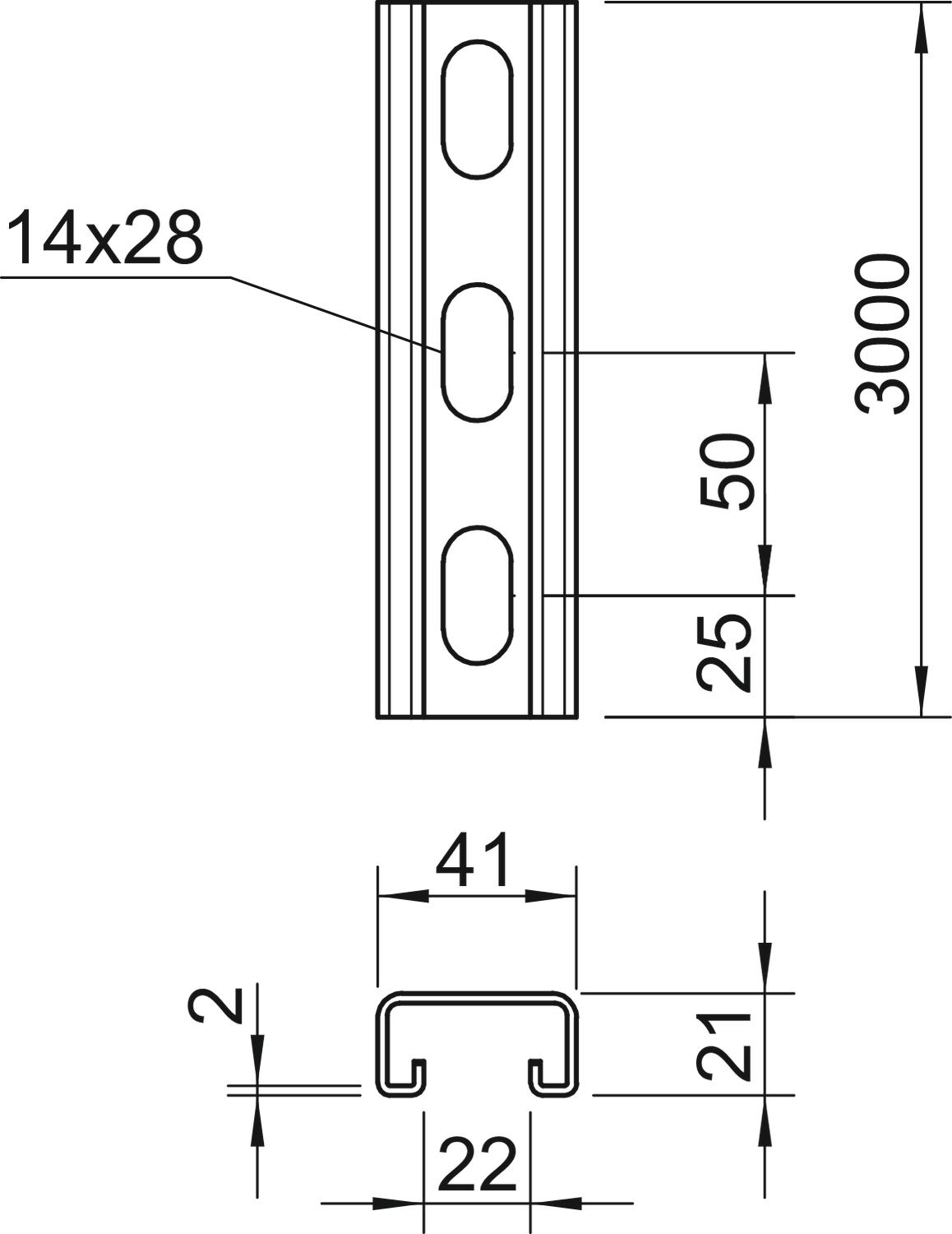Perfil perfurado, rasgo 22mm 3000x41x21, V4A, 1.4571, 2B - 1122931 - Obo Bettermann