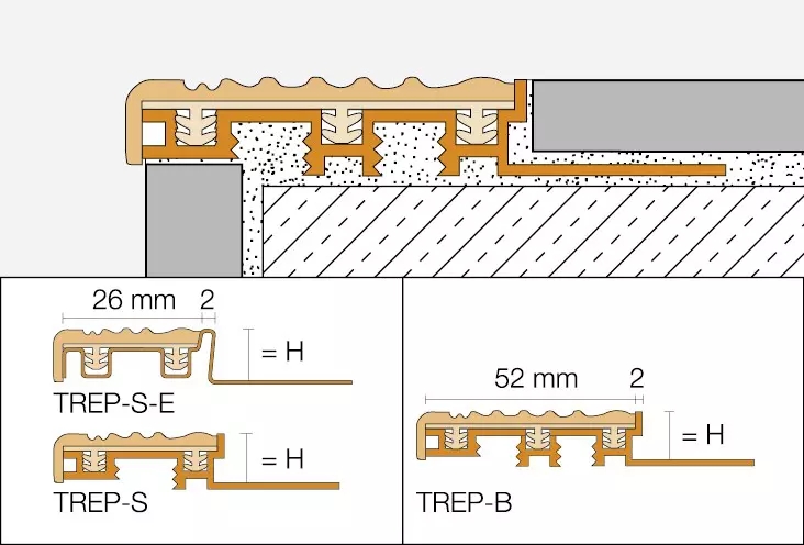 Perfis para escadas com superfície de contacto amovível Schlüter-TREP-S/-B