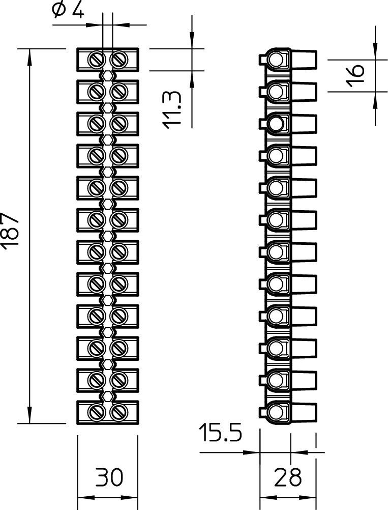 Régua de junção 25,0mm², PP, preto - 2056585 - Obo Bettermann