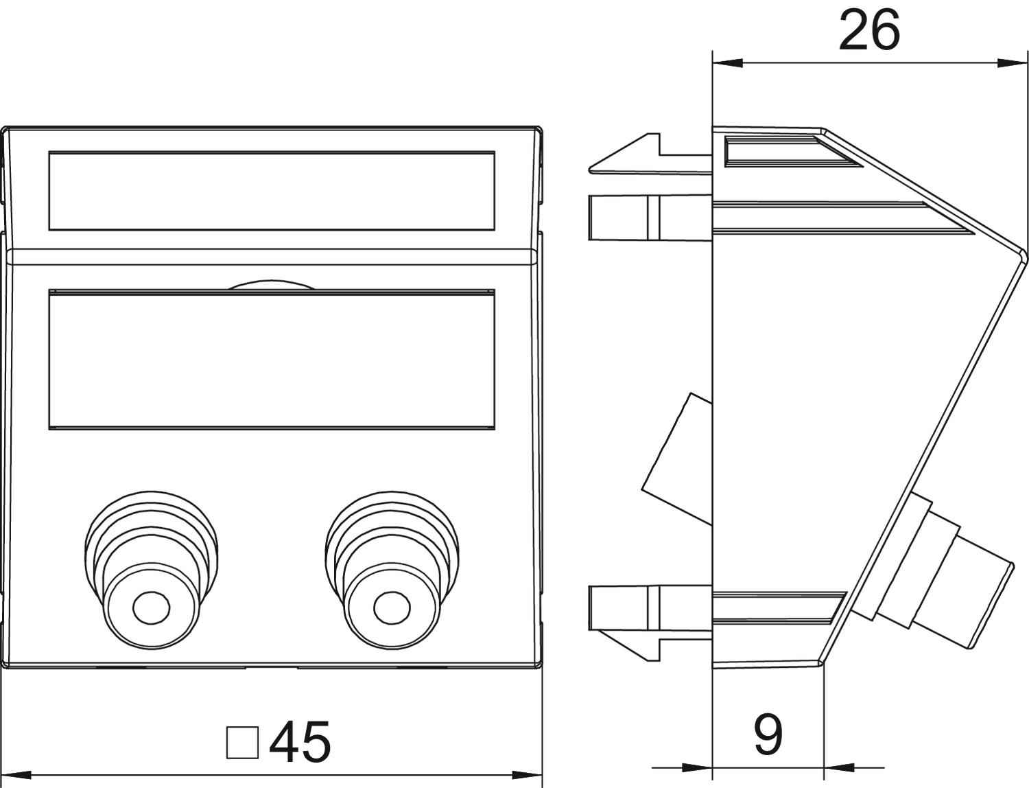 Suporte multimédia RCA áudio 2x Ficha, fêmea-fêmea 45x45mm, PC, branco puro, 9010 - 6105078 - Obo Bettermann