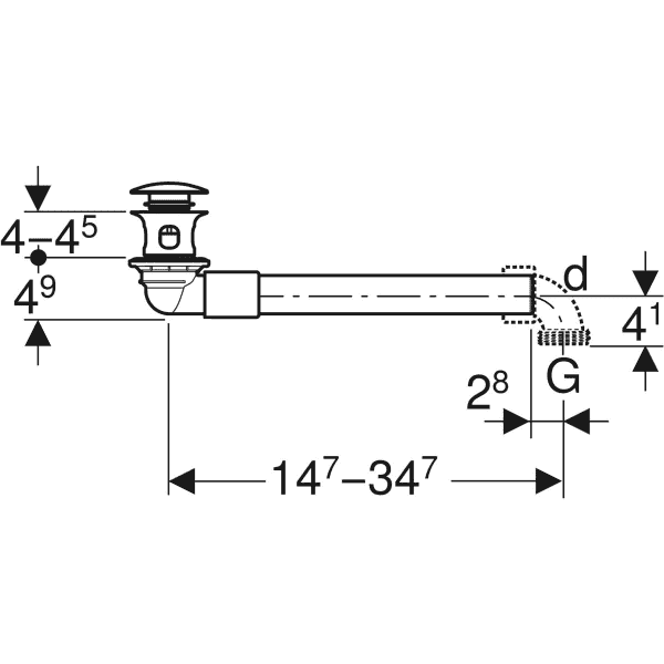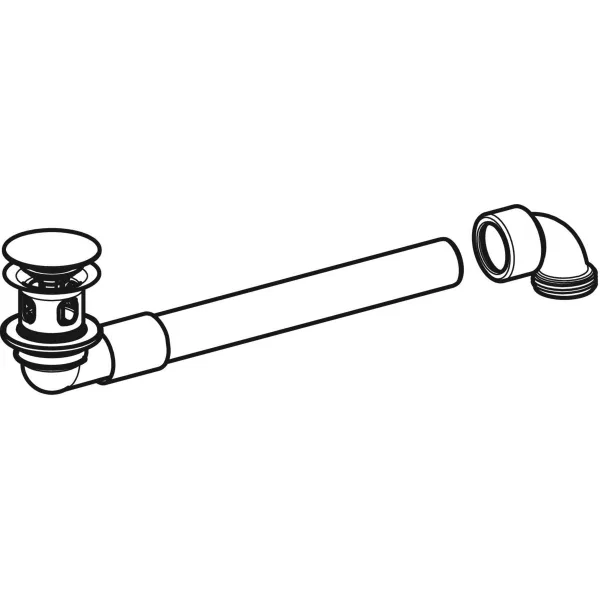 Válvula de drenagem Geberit, modelo poupa-espaço, versão estreita, com tampão para sifão exterior com botão de acionamento